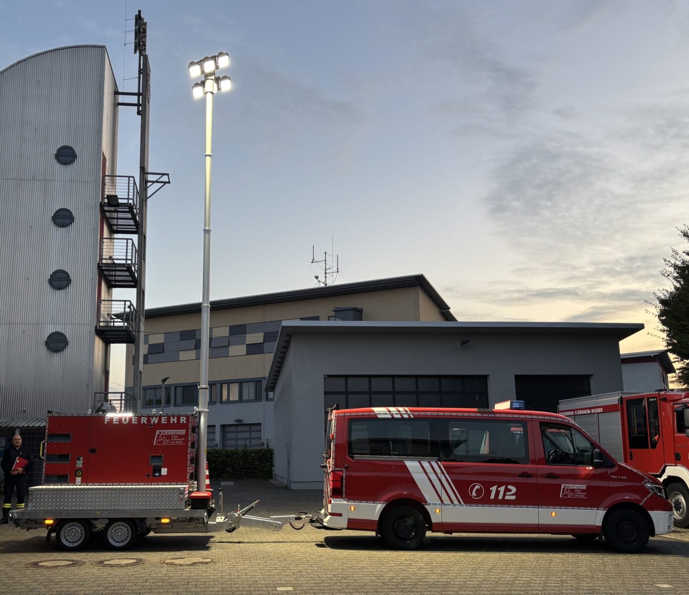 Anschließend fasste Markus Kaschel die Beschaffung des neuen Stromanhängers zusammen. Er betonte die Bedeutung des auf einem Tandemfahrgestell aufgebauten Anhängers für die Wehr in Wicker: Im Falle eines großflächigen Stromausfalls könne das Feuerwehrhaus als zentraler Anlaufpunkt für die Bevölkerung dienen und entsprechend mit Strom versorgt werden. Der Anhänger ist zusätzlich mit einem neun Meter hohen Lichtmast ausgerüstet, so dass er auch zur großflächigen Ausleuchtungen von Einsatzstellen eingesetzt werden kann. Mit einer Tankfüllung kann ein unterbrechungsfreier Betrieb des Stromerzeugers für bis zu zwölf Stunden sichergestellt werden.