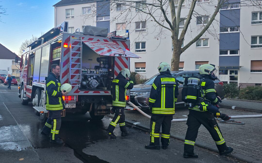 Die Feuerwehren der Stadt Flörsheim am Main, die Drehleiter der Feuerwehr Hochheim am Main, der Regelrettungsdienst, das DRK Flörsheim sowie die Polizei wurden am Samstagmorgen zu einem Brand in einem mehrgeschossigen Mehrfamilienhaus nach Flörsheim alarmiert. Bei der Einsatz-Meldung „Brand in Gebäude – Menschen in Gefahr“ werden nach Alarmplan alle drei Feuerwehren und Unterstützungseinheiten alarmiert, so auch der Brandschutzaufsichtsdienst, der in Person des Stellv. Kreisbrandinspektors ebenfalls vor Ort war.