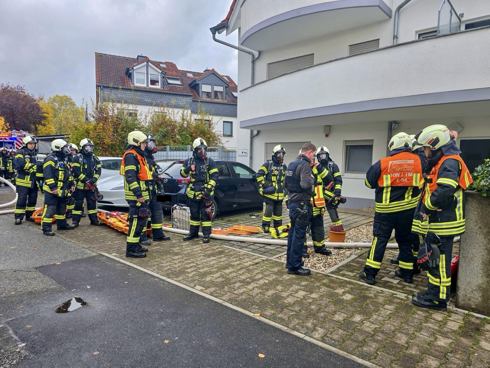Die Feuerwehren der Stadt Flörsheim am Main, die Drehleiter der Feuerwehr Hochheim am Main, der Regelrettungsdienst, das DRK Flörsheim am Main sowie die Polizei wurden am Sonntagvormittag zu einem Dachstuhlbrand nach Flörsheim alarmiert. Vor Ort konnte in einer Dachgeschosswohnung eines Mehrfamilienhauses ein Brand lokalisiert werden. Die Wohnung sowie der Treppenraum und angrenzende Bereiche waren bereits stark verraucht. Trupps mit umluftunabhängigem Atemschutz drangen zur Brandbekämpfung in das Dachgeschoss vor. Weitere Einsatzkräfte verbrachten die rund 14 Bewohner des Hauses ins Freie und in Sicherheit. Die Drehleiter der Feuerwehr Hochheim wurde in Stellung gebracht. Das Feuer konnte rasch gelöscht werden. Mit Wärmebildkameras wurden weitere Glutnester geortet und abgelöscht. Die Brandlast und verrauchte Gegenstände wurden ins Freie verbracht.