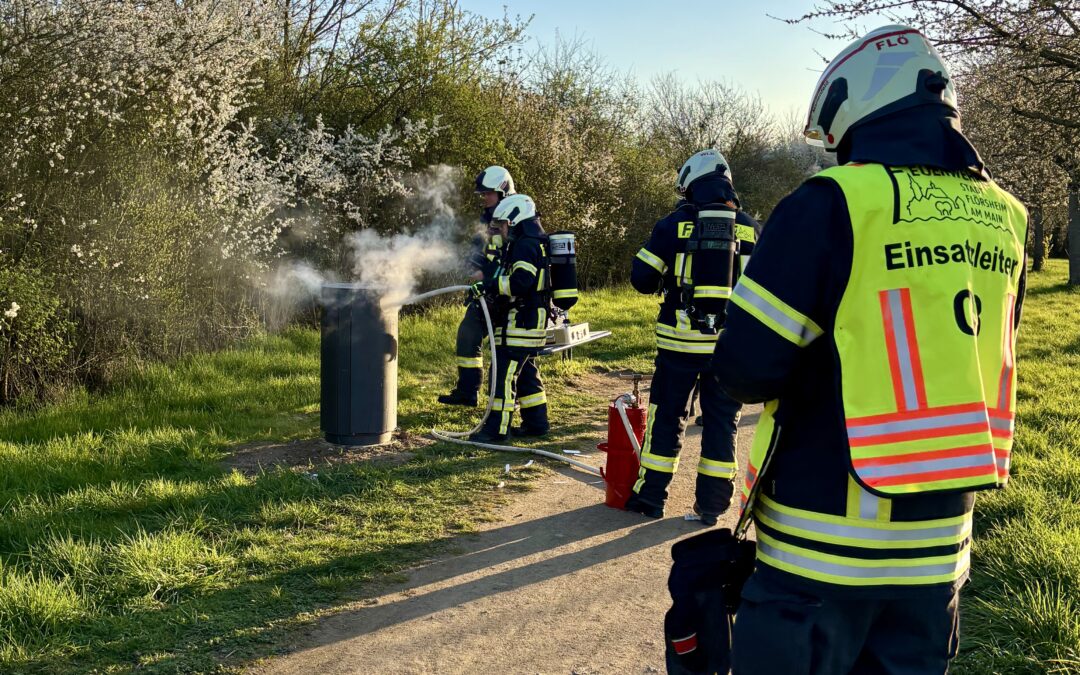 Die Feuerwehr Weilbach wurde am Freitagnachmittag zu einem brennenden Abfallbehältnis nach Weilbach ins Industriegebiet alarmiert. Beim Eintreffen brannte in dem Metallbehältnis Abfall, welcher mit einem Kleinlöschgerät abgelöscht wurde. Nach Abschluss der Löscharbeiten wurde das Abfallbehältnis noch gekühlt und mit der Wärmebildkamera kontrolliert.