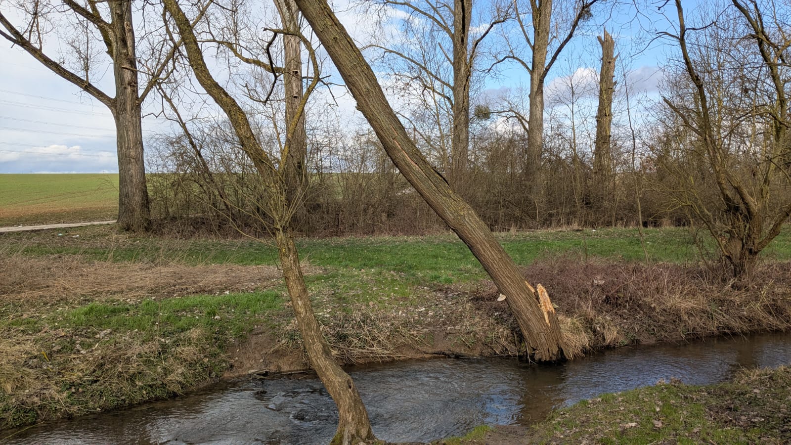 Die Feuerwehr Weilbach wurde telefonisch über einen Sturmschaden in den Schlosswiesen informiert. Ein Baum brach in zirka einem Meter Höhe ab und verfing sich in einem benachbarten Baum in dessen Krone. Da der Baum auf einen Fußweg zu fallen drohte, sperrte die Feuerwehr den Bereich weiträumig ab und informierte die Stadt.