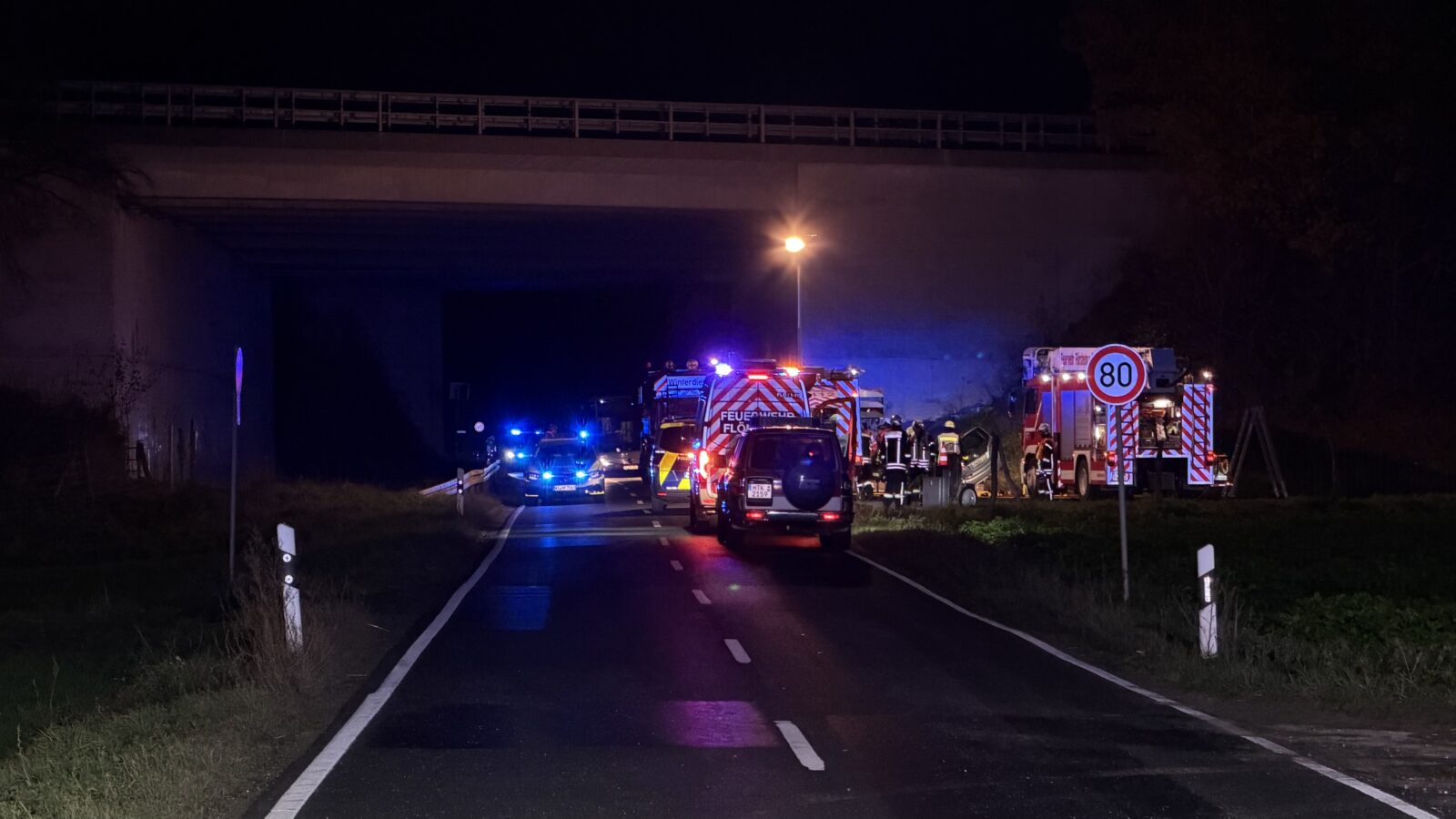 Die Feuerwehren der Stadt Flörsheim am Main, der Regelrettungsdienst, der diensthabende Kreisbrandmeister sowie die Polizei wurden zu einem Verkehrsunfall mit eingeklemmter Person alarmiert. Die Einsatzstelle wurde gemeldet auf der Landstraße zwischen Flörsheim und Eddersheim, wurde nach Erkundung direkt an der Brücke der Autobahn BAB A3 lokalisiert. Nach Rücksprache mit dem Rettungsdienst konzentrierte sich die Arbeit der Einsatzkräfte auf die Personenbergung. Die Feuerwehr Weilbach unterstützte mit dem LF20 sowie weiteren Kräften im Feuerwehrhaus in Bereitschaft.