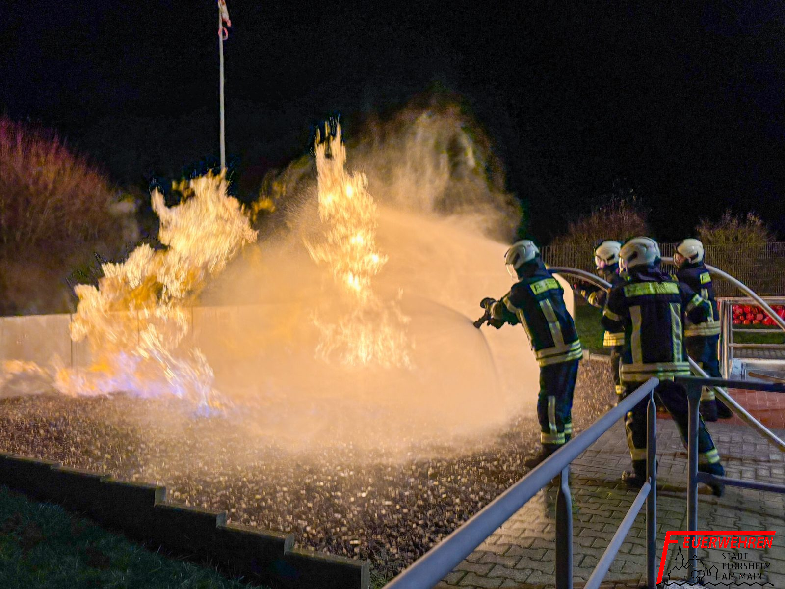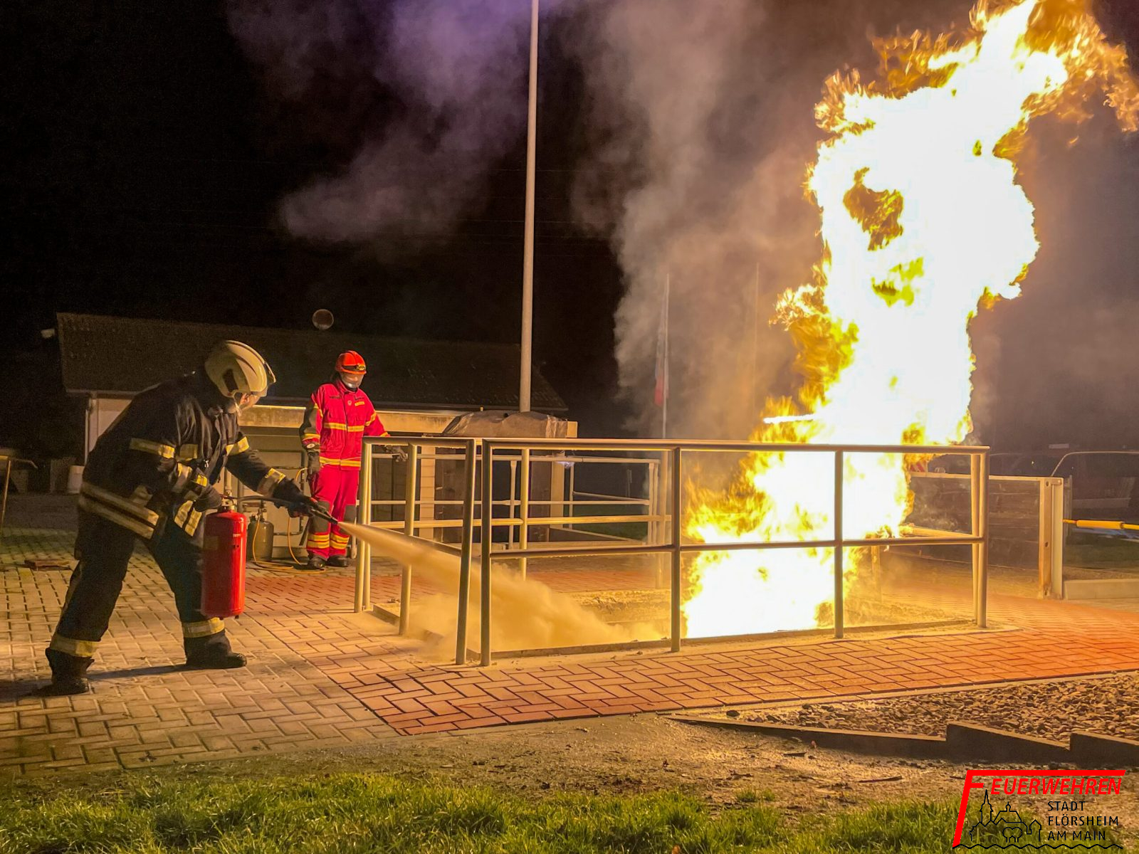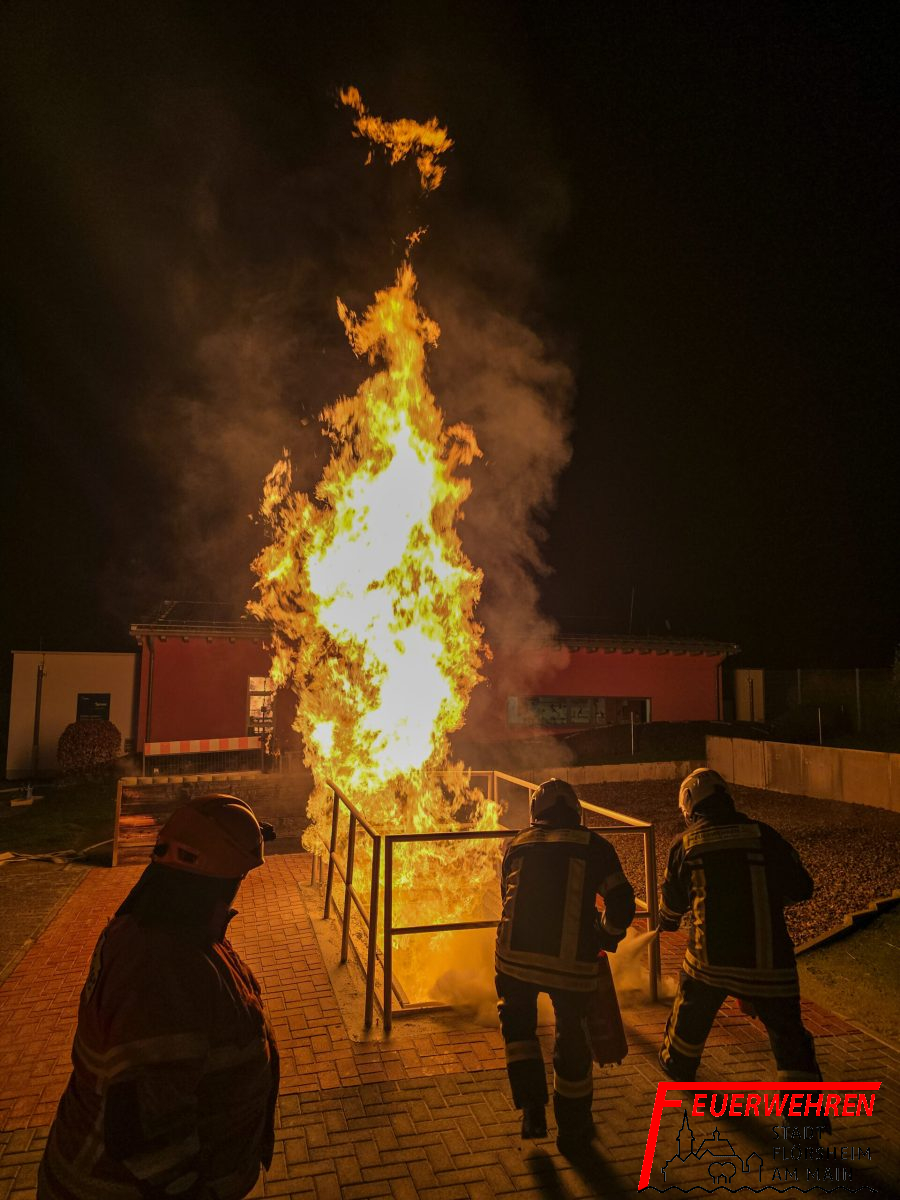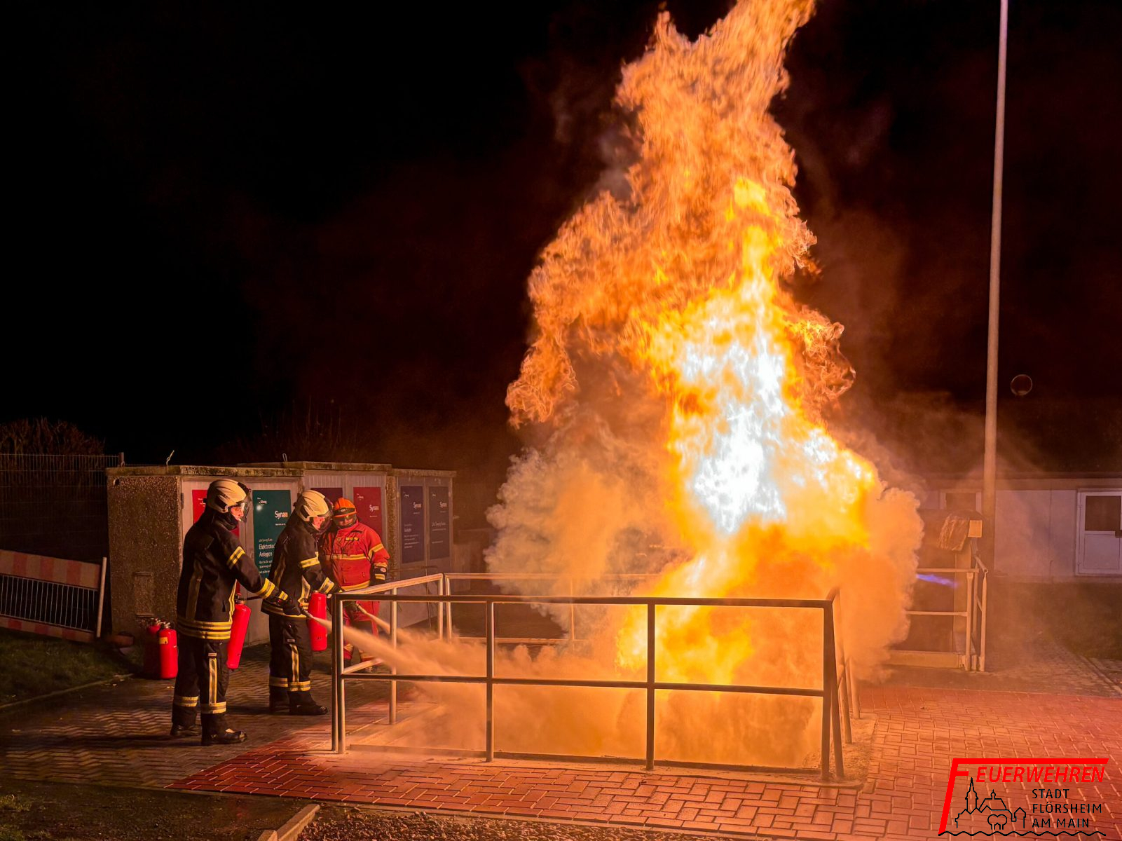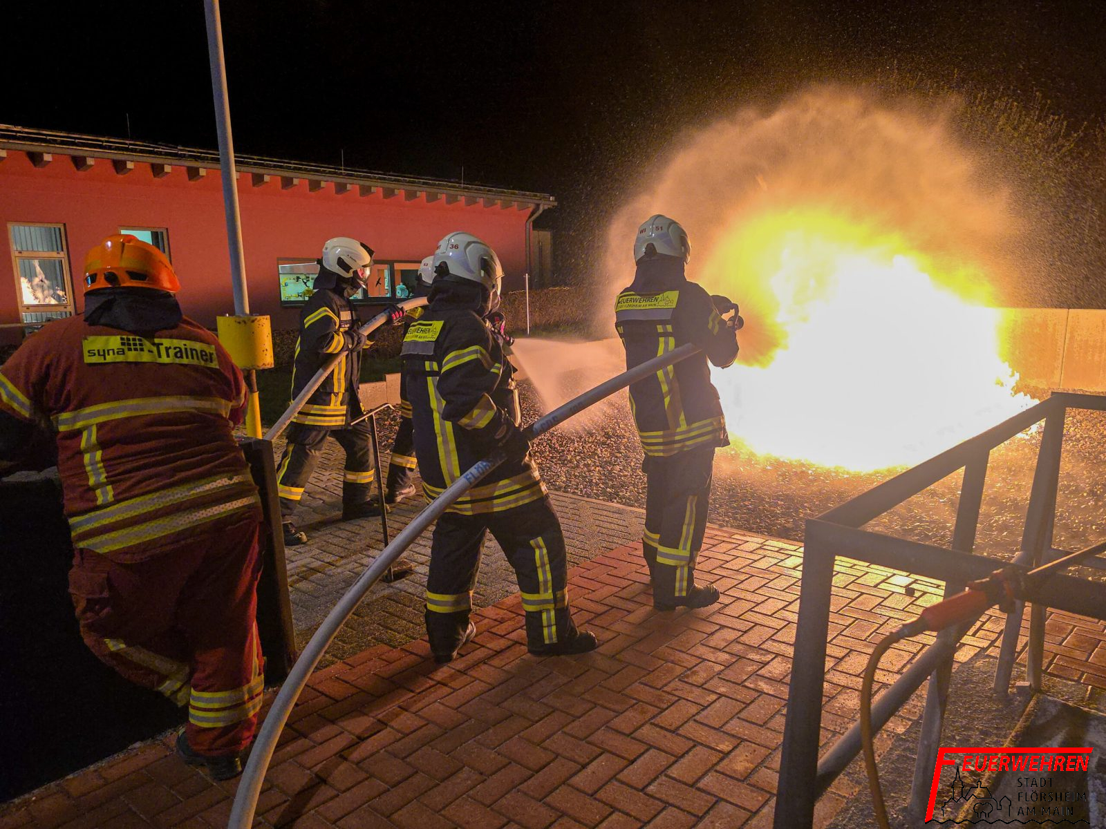 Neben dem Einsatz des C-Hohlstrahlrohres wurde auch der gezielte Umgang mit ABC-Pulverlöschern trainiert. Dabei lag der Schwerpunkt auf der sogenannten antikatalytischen Löschwirkung, bei der chemische Reaktionsketten in der Flamme gezielt unterbrochen werden. Die Teilnehmenden konnten so wichtige Handlungsabläufe festigen und ihre Handlungssicherheit im Umgang mit unterschiedlichen Löschmitteln deutlich steigern. Zentrale Ausbildungsinhalte waren dabei stets der Eigenschutz, das frühzeitige Erkennen von Gefahren sowie ein strukturiertes und sicheres Vorgehen nach einsatztaktischen Grundsätzen.