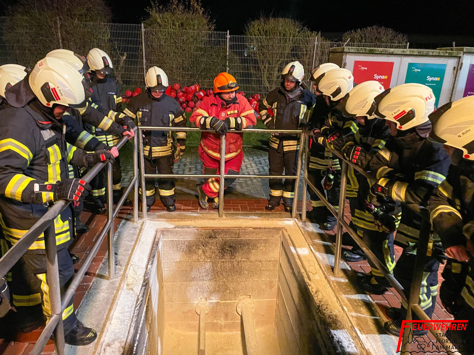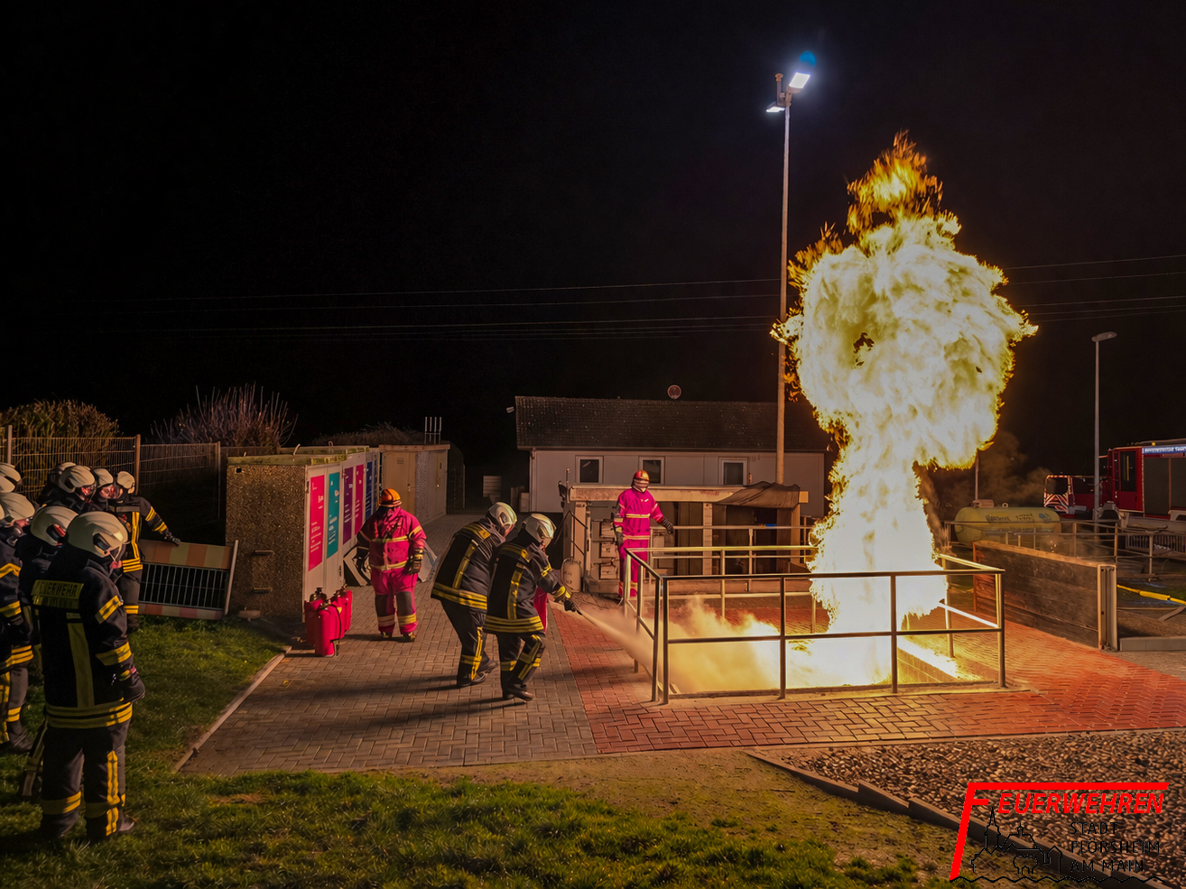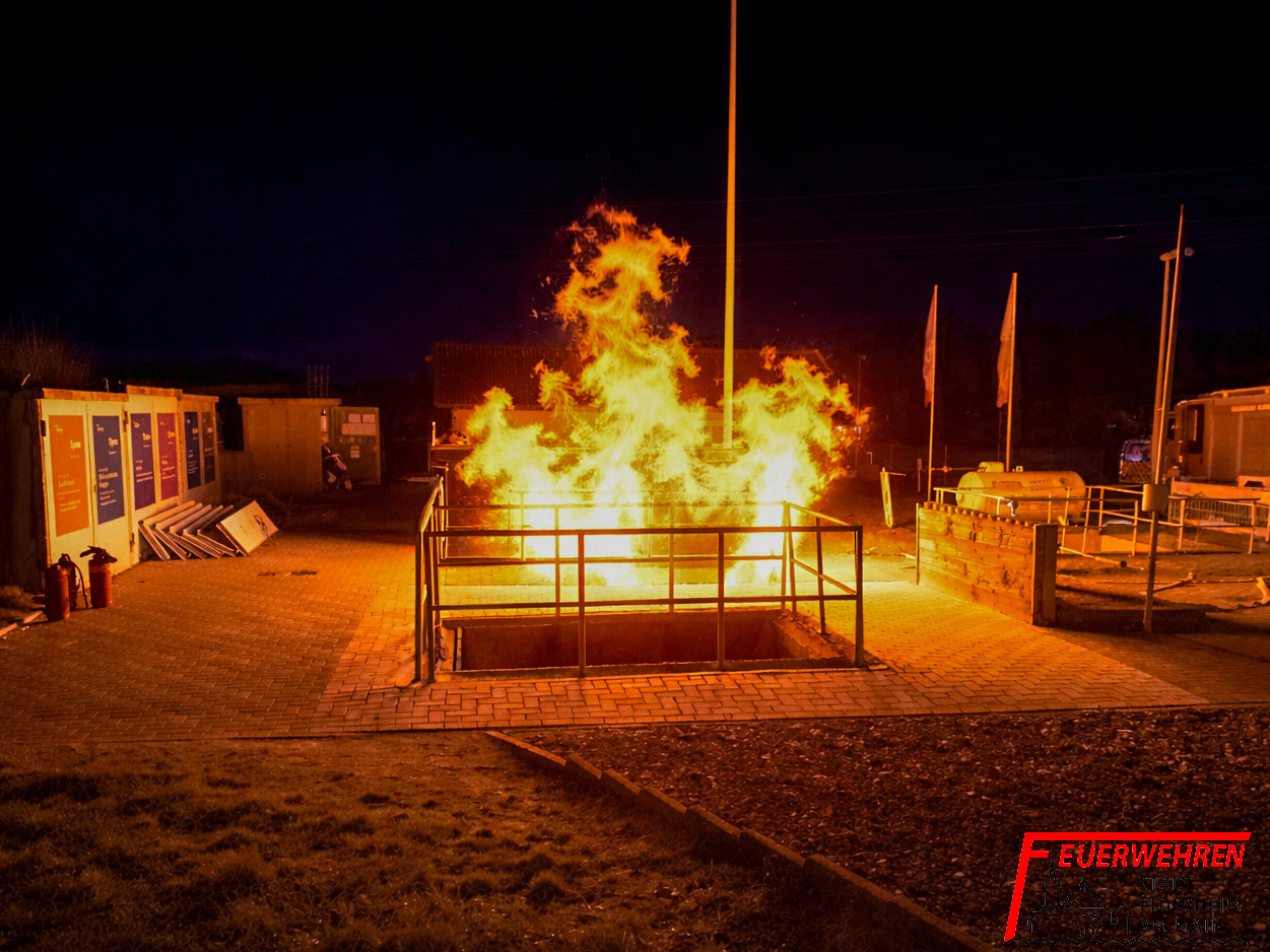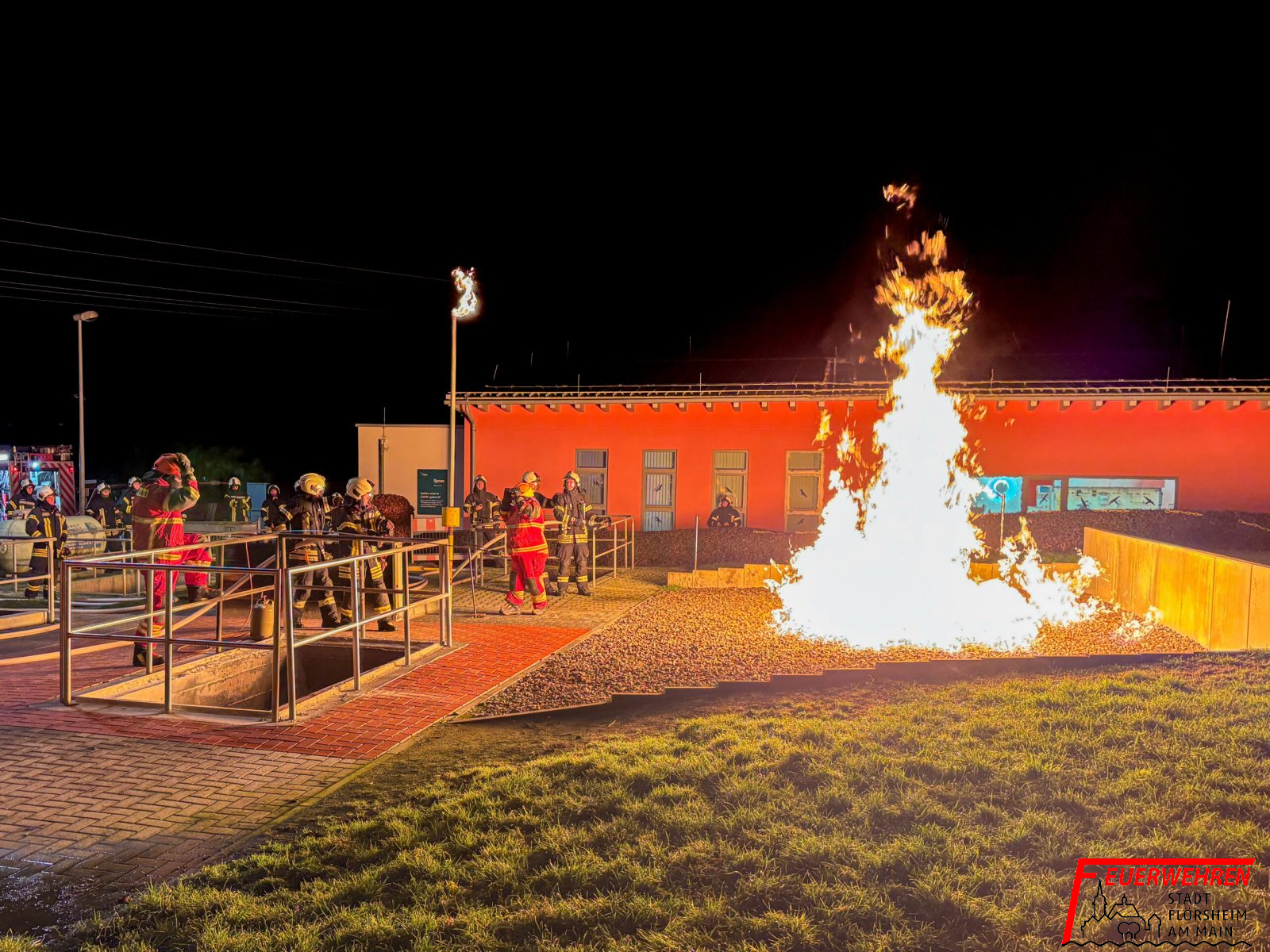Der anschließende Praxisteil bildete das Herzstück der Ausbildung. Unter realitätsnahen Bedingungen konnten die Teilnehmenden ihr Wissen unmittelbar anwenden und vertiefen. Szenarien wie ein durch Gasaustritt verursachter Flächenbrand, eine brennende Gasleitung in einer Baugrube oder die Simulation einer Gasexplosion in einem Kellerraum verdeutlichten eindrucksvoll die Dynamik und das Gefahrenpotenzial solcher Einsatzlagen. Besonders prägend waren die intensive Hitzewahrnehmung sowie das sichtbare Verhalten von Flammen bei unter Druck austretendem Gas.